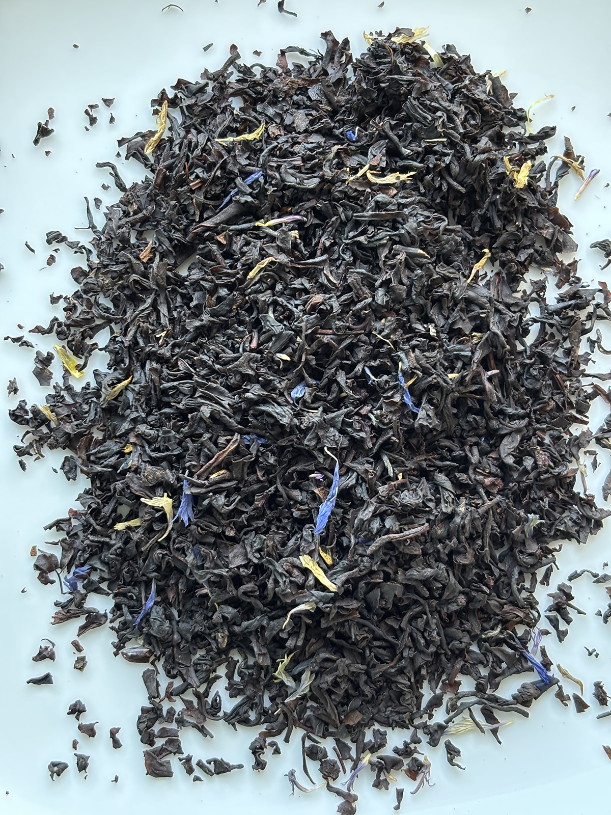 Thé noir Assam*, -Inde du Sud*, arôme naturel de bergamote, fleurs de bleuet*. *Issu de l‘agriculture biologique